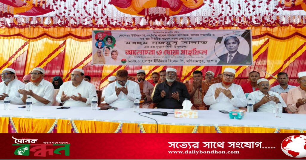 মণিরামপুর প্রতিনিধিঃ ১৬ নং নেহালপুর ইউনিয়ন বিএনপির প্রয়াত নেতা সফল চেয়ারম্যান মরহুম নাজমুস সাদাতে’র ৩য় মৃত্যুবার্ষিকী পালন করেছে মণিরামপুর উপজেলা বিএনপি।