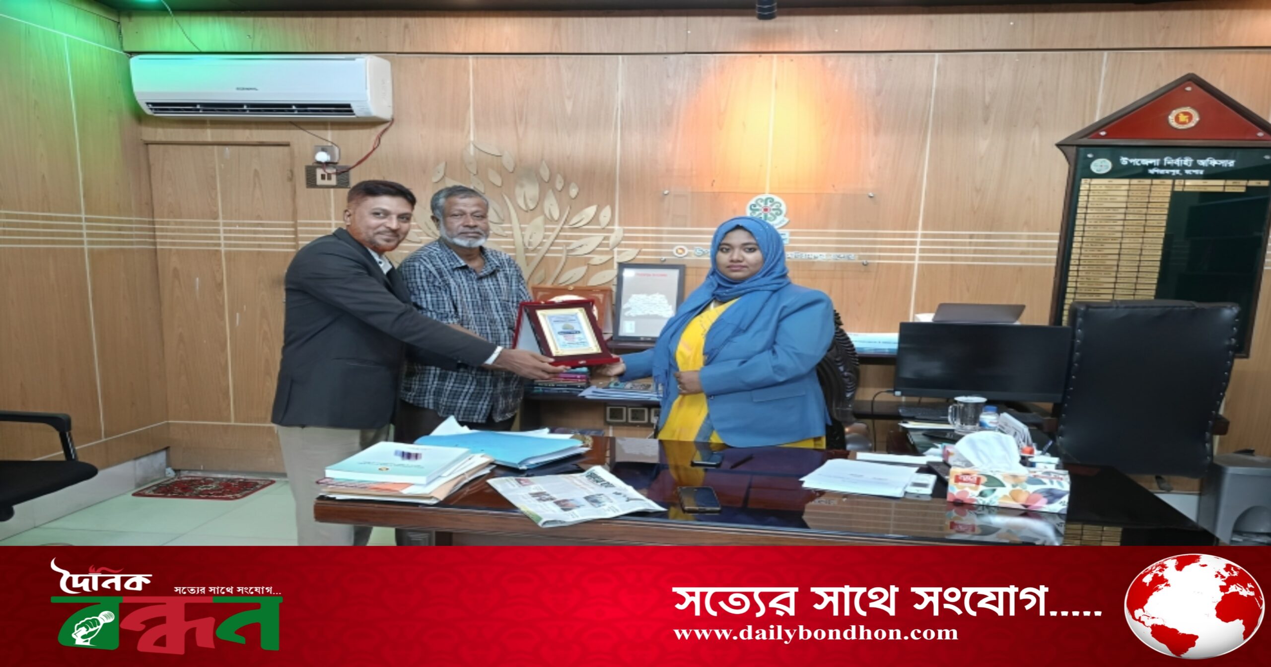 মামুনুর রশিদ,মনিরামপুরঃ মণিরামপুর উপজেলা নির্বাহী অফিসার ও নারীর অগ্রযাত্রার অনন্য সৈনিক জনাব নিশাত তামান্নার সাথে শুভেচ্ছা বিনিময় করেন- জ্ঞান চর্চা কেন্দ্র, সামাজিক প্রতিষ্ঠান ও ষাট বছরে পথচলা ও সাহিত্য-সংস্কৃতির বিশাল ক্যানভাসের অনন্য সারথী “খামারবাড়ী পাবলিক লাইব্রেরি”র একাধিকবার নির্বাচিত সম্পাদক, সফেদ মনের মানুষ মোঃ জমিরুল ইসলাম ও লাইব্রেরির আজীবন সদস্য এবং সাহিত্য-সাংস্কৃতিক বিষয়ক সম্পাদক এস.এম. হাফিজুর রহমান।
